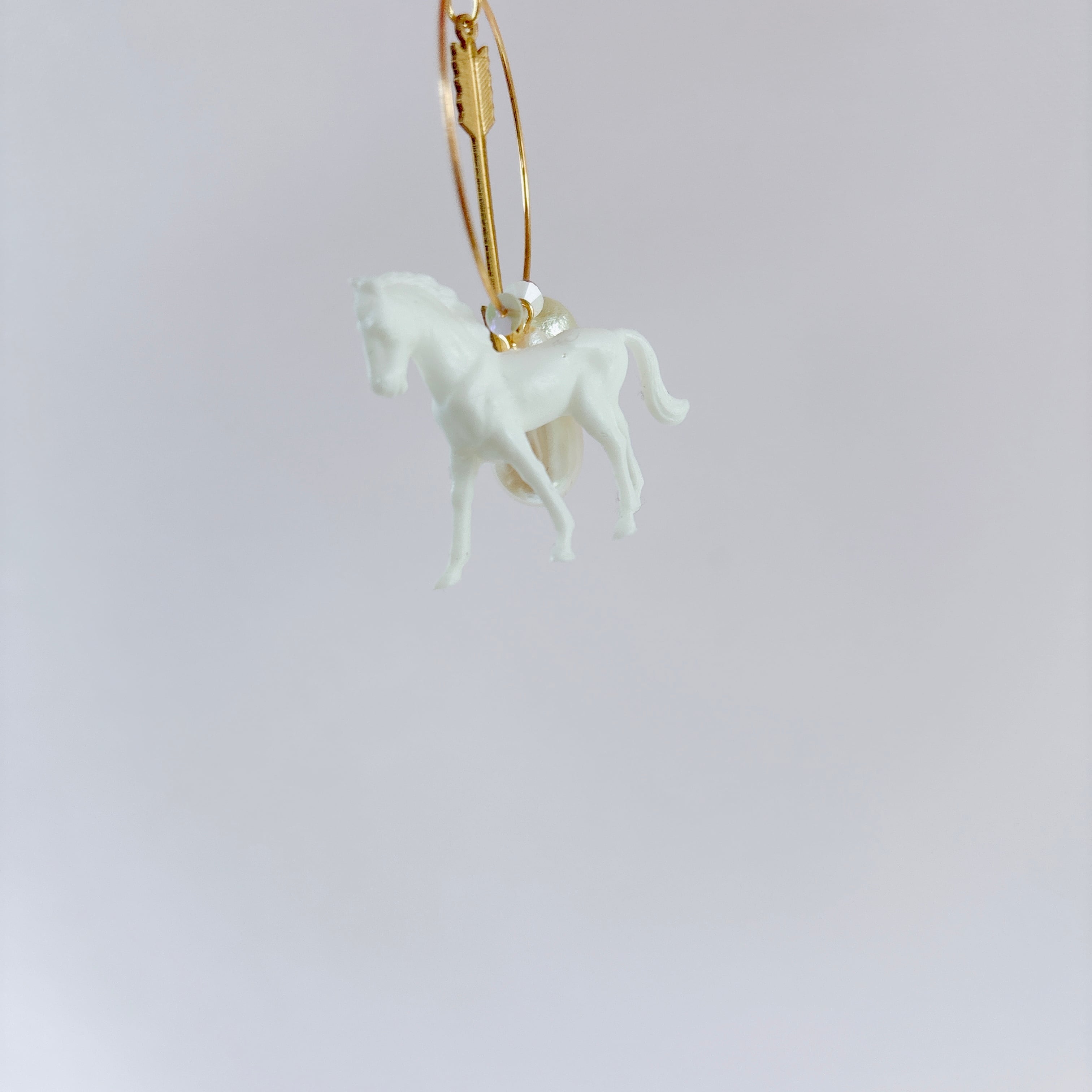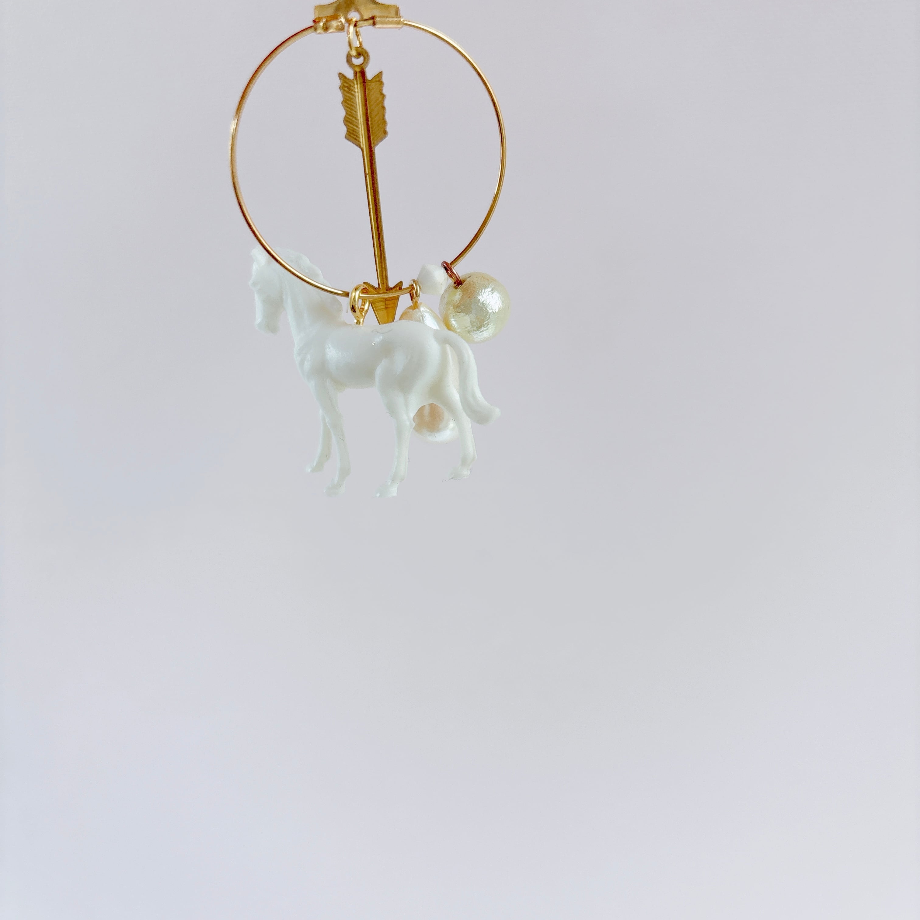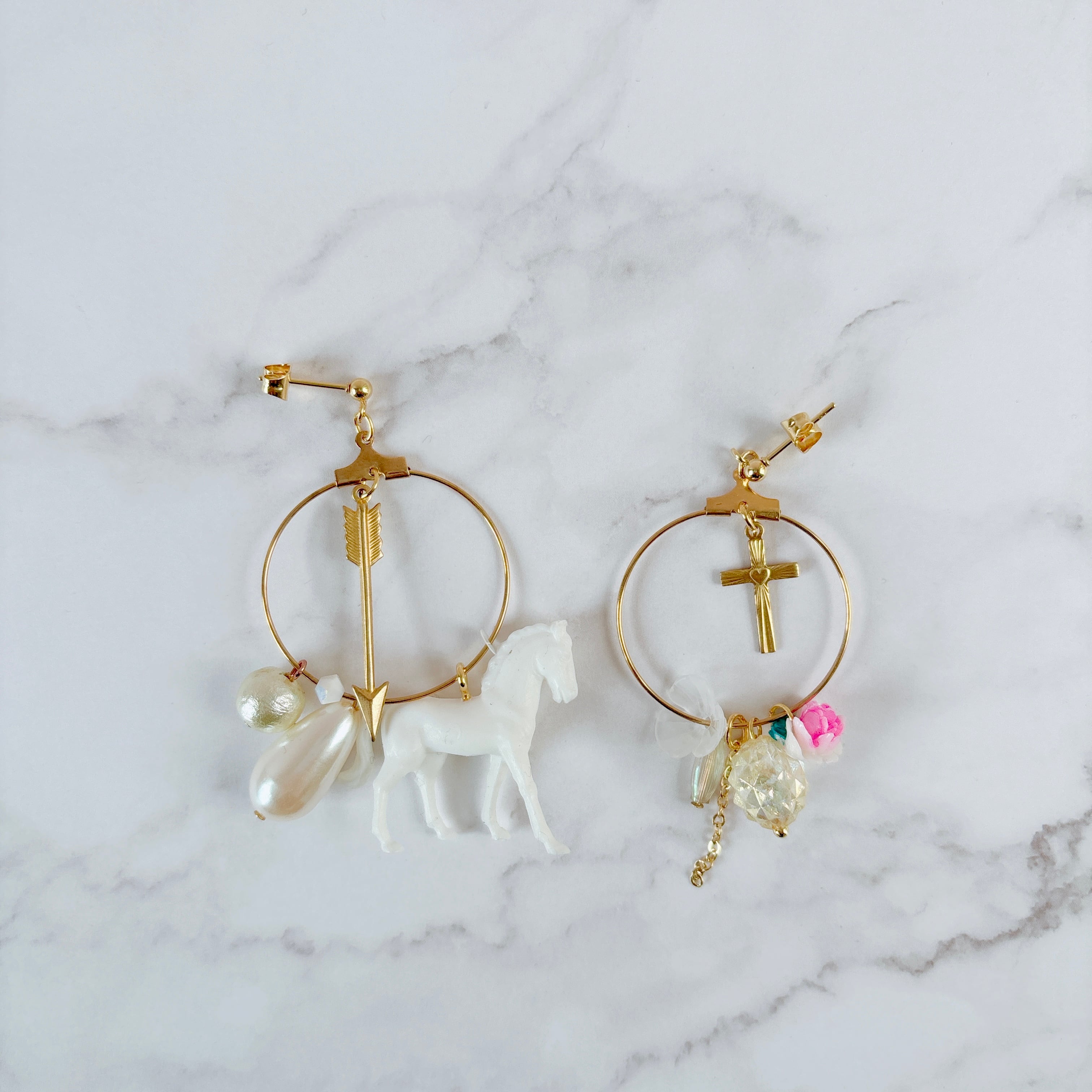 白馬やバラのカボション、キューピットが放つような矢、パール、オーロラ色のパーツ…