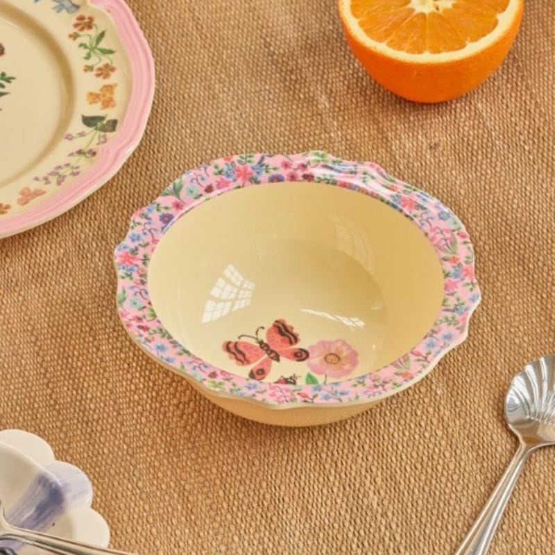 キュートな蝶やてんとう虫と美しい花柄の縁取りが、金曜の夜にサラダや小さな花、キャンディーなどを添えるのにぴったりです。