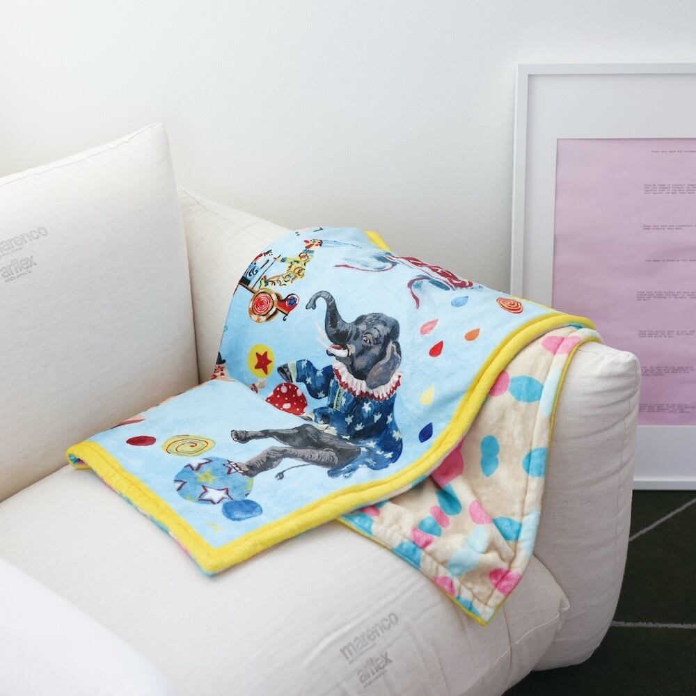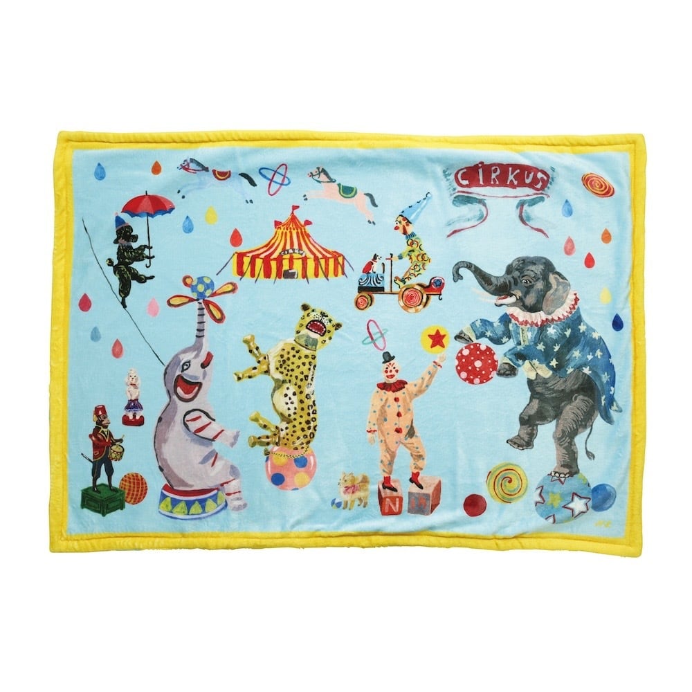 NEW!【Nathalie Lete】二重のふわふわブランケット サーカス ライトブルー Nathalie Lete Double layer Blanket Circus-Light blue
