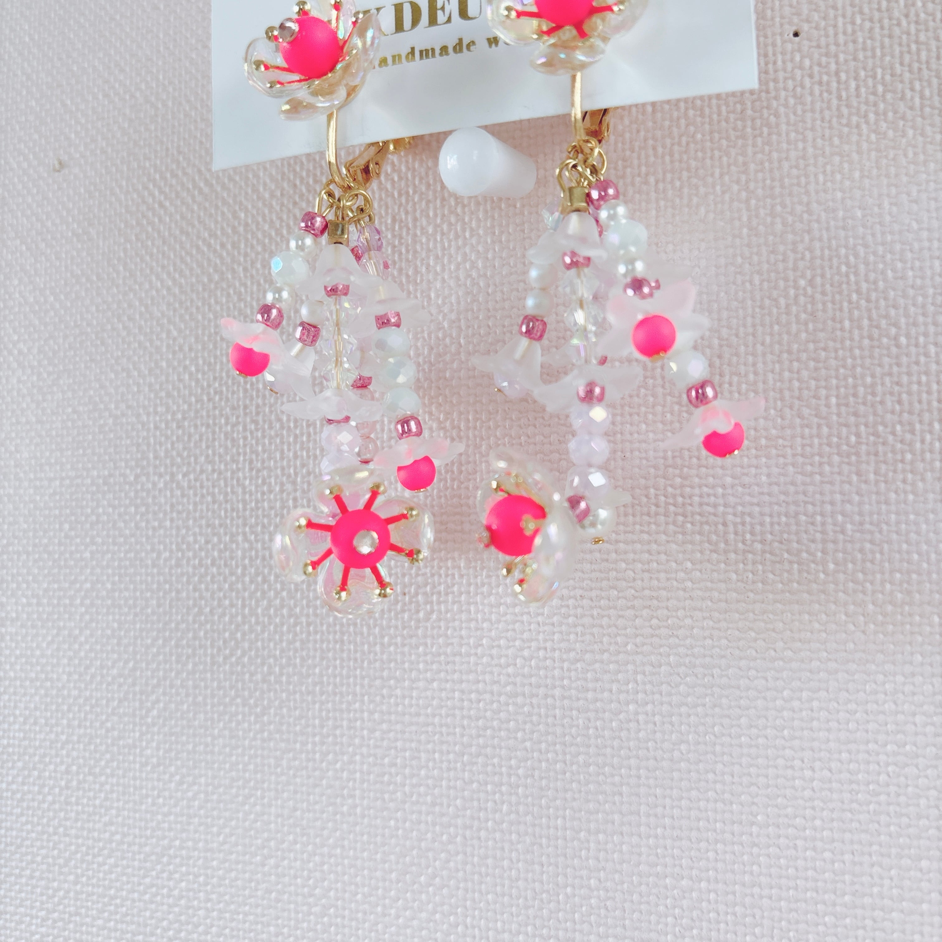 可愛らしいビーズのお花が沢山咲いている可愛いイヤリング