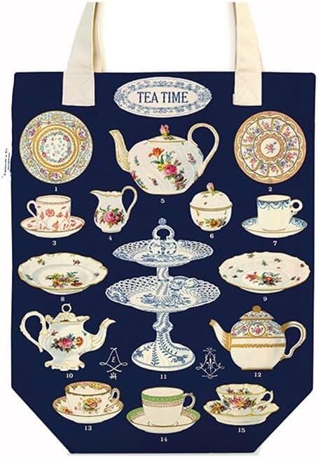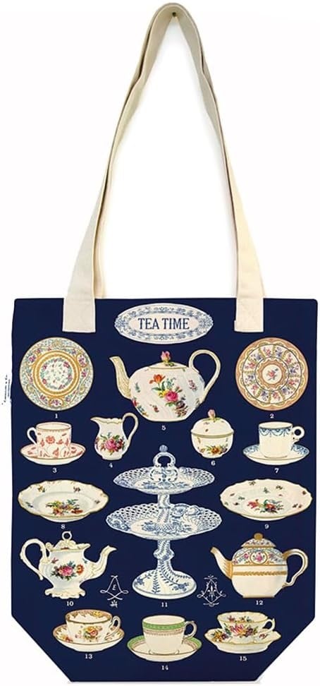 しっかりした厚手のピュアコットンにヴィンテージ調のティーセットのイラストが大きくプリントされています。