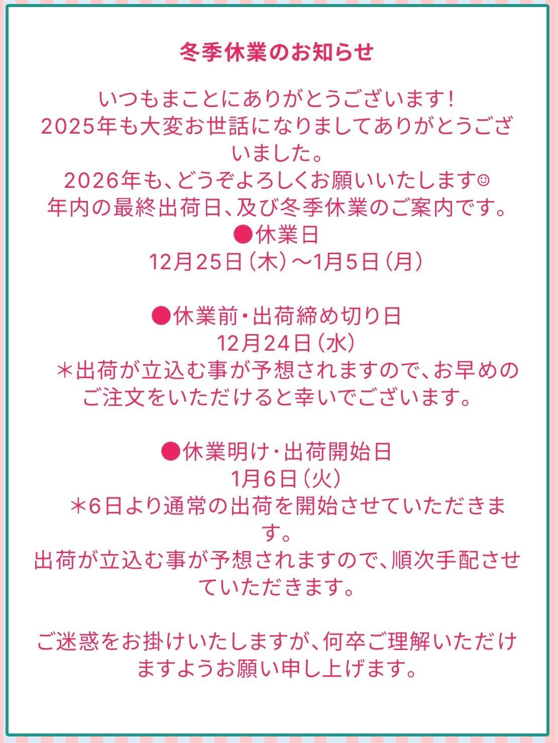 *出荷が立込む事が予想されますので、お早めのご注文をいただけると幸いでございます。
