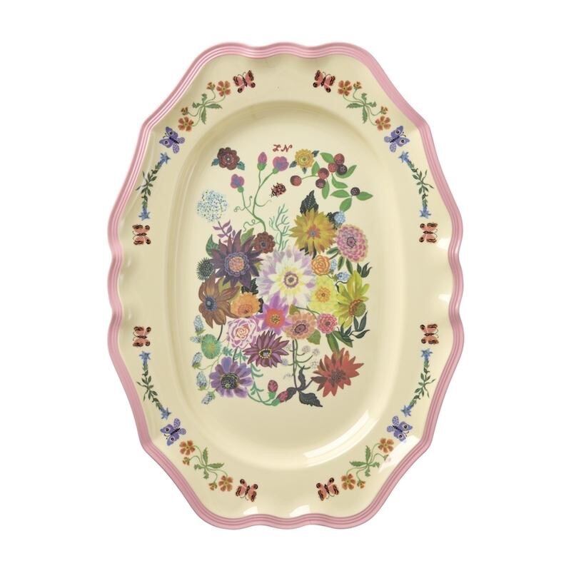 【rice】Nathalie Lete(ナタリー・レテ) プリントメラミン サービングディッシュ ラージサイズ ピンク Melamine Vintage Serving Dish/ Pink