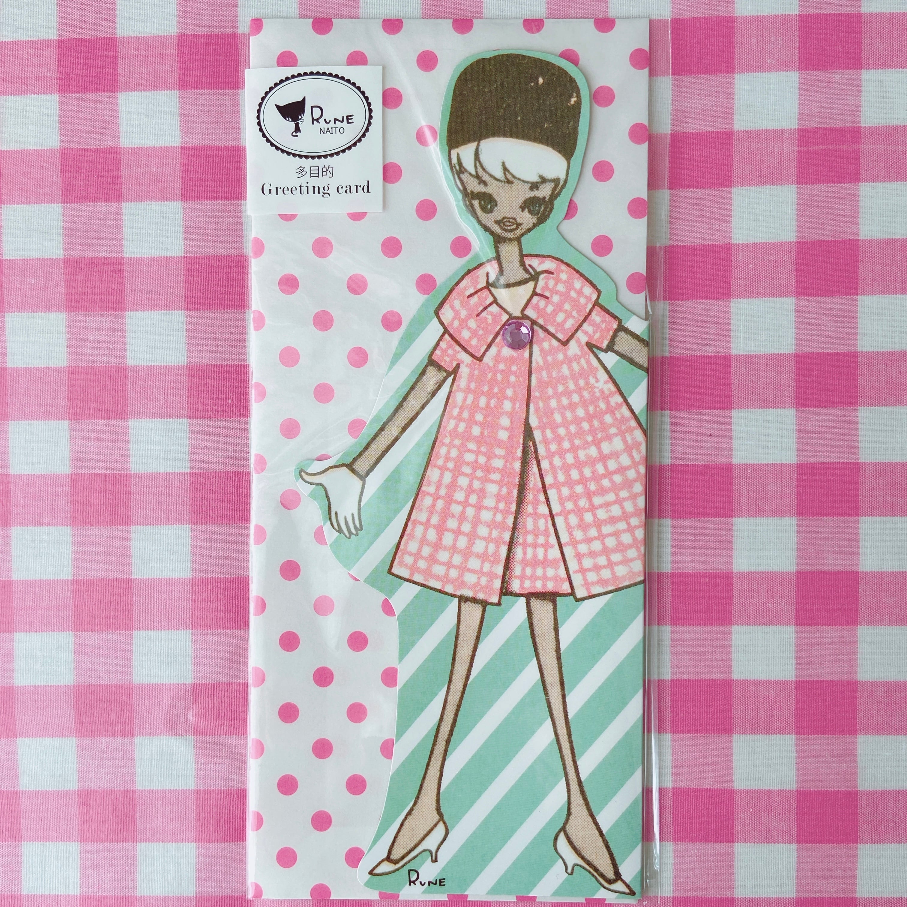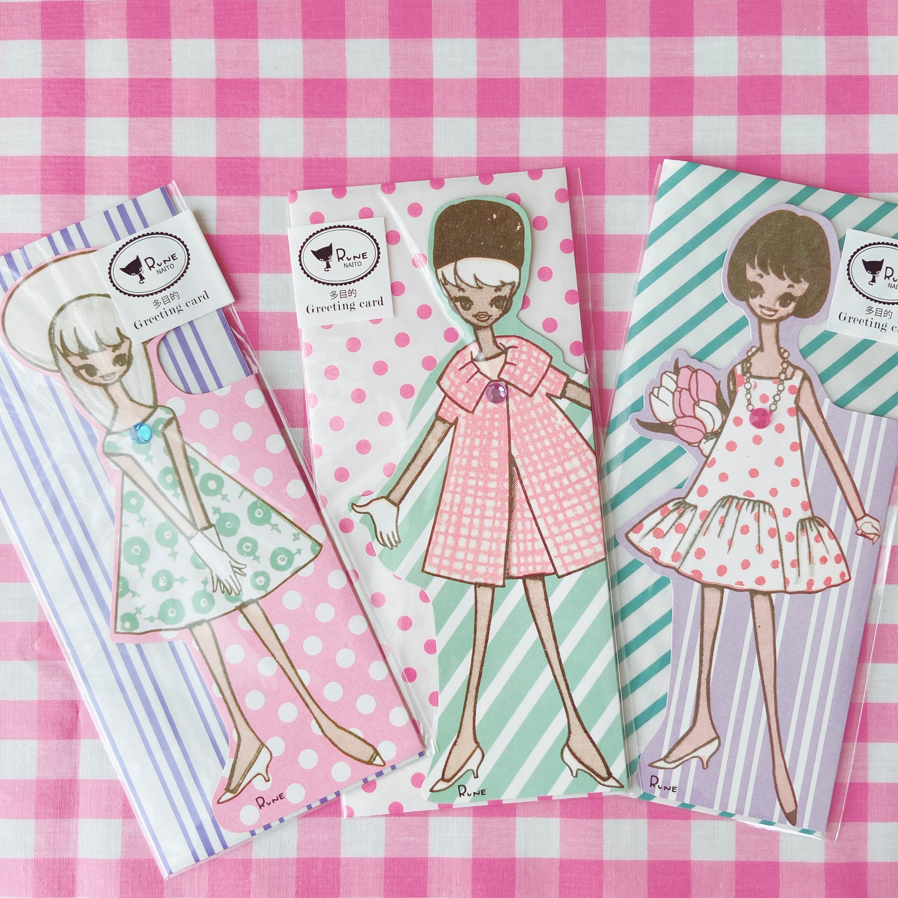 時代を超えて愛される内藤ルネさんの描く、とっても可愛い女の子たちがダイカット風グリーティングカードに。