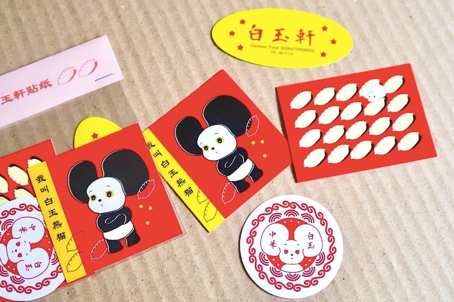 白玉軒のロゴや看板デザインを含む中華なデザインの4点セット。