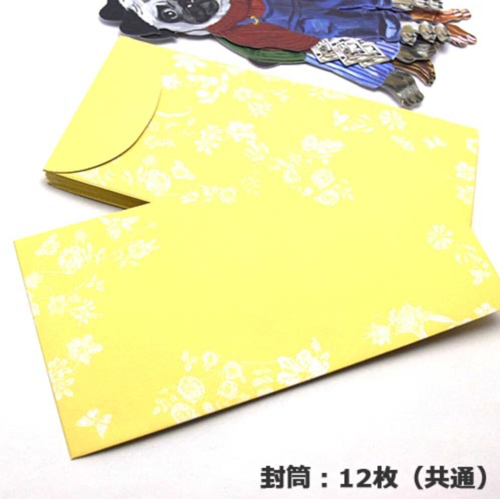 4種類のデザインのカードが各3枚ずつ、計12枚と封筒のセットです。