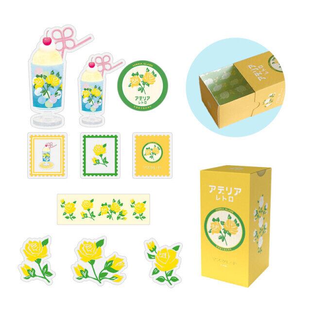 こちらはそんなアデリアレトロのグラスが入った外箱をミニチュア化したパッケージがかわいいフレークシール。