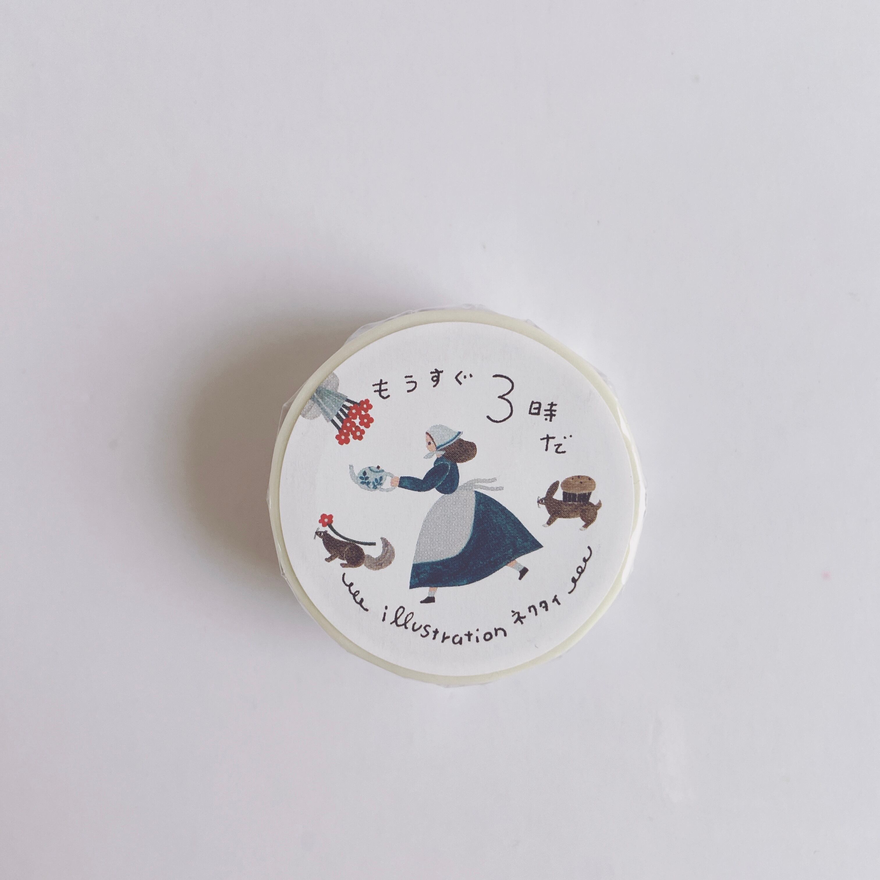 手紙社さんコラボのマスキングテープ「もうすぐ3時だ」です
