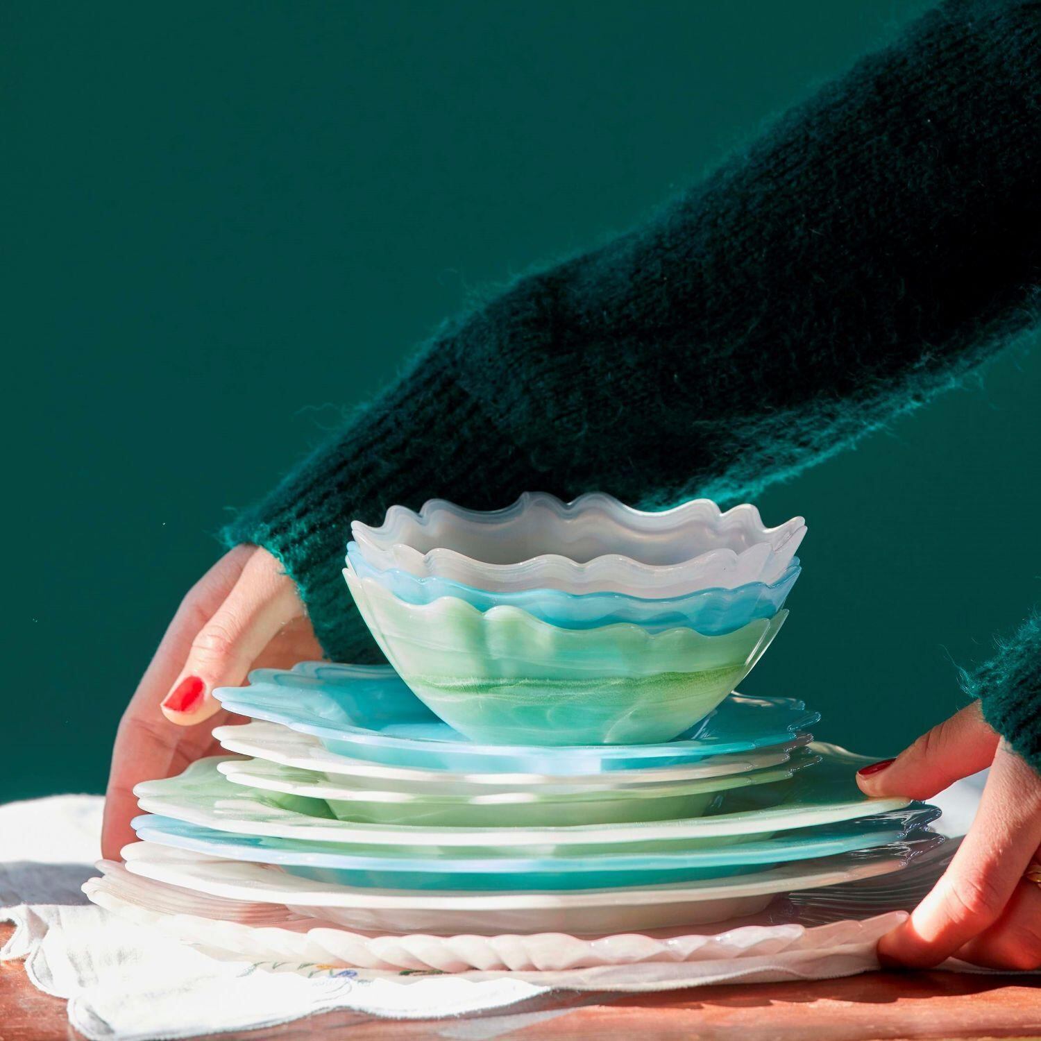 【rice】アラバスターガラス ランチプレート スカイブルー