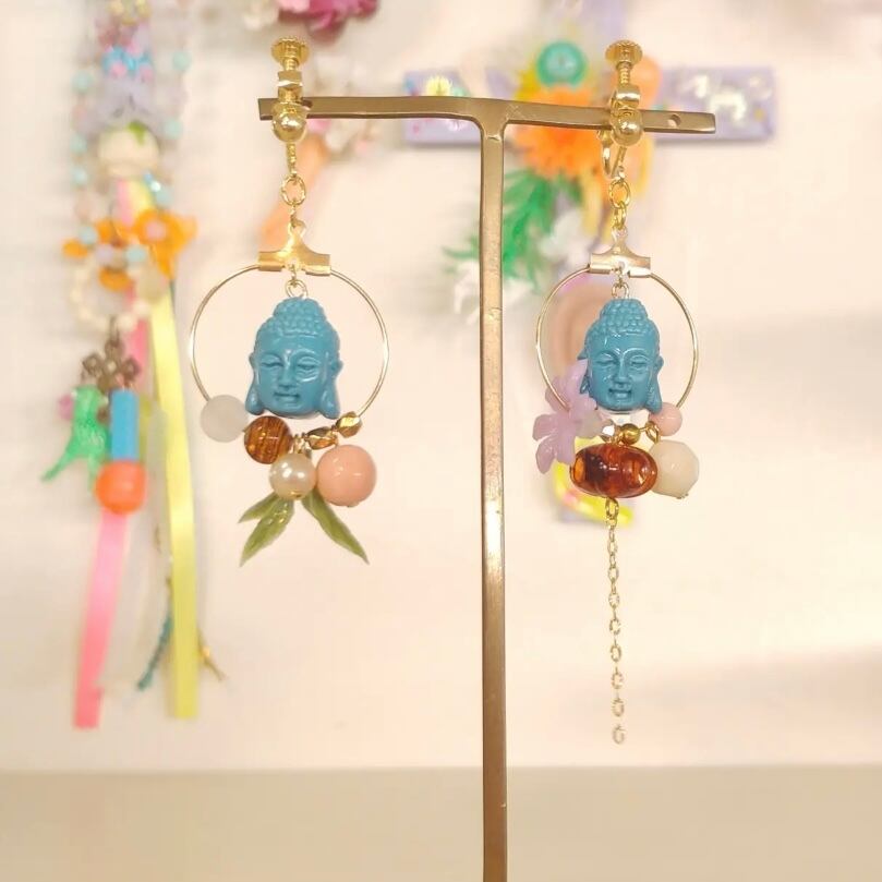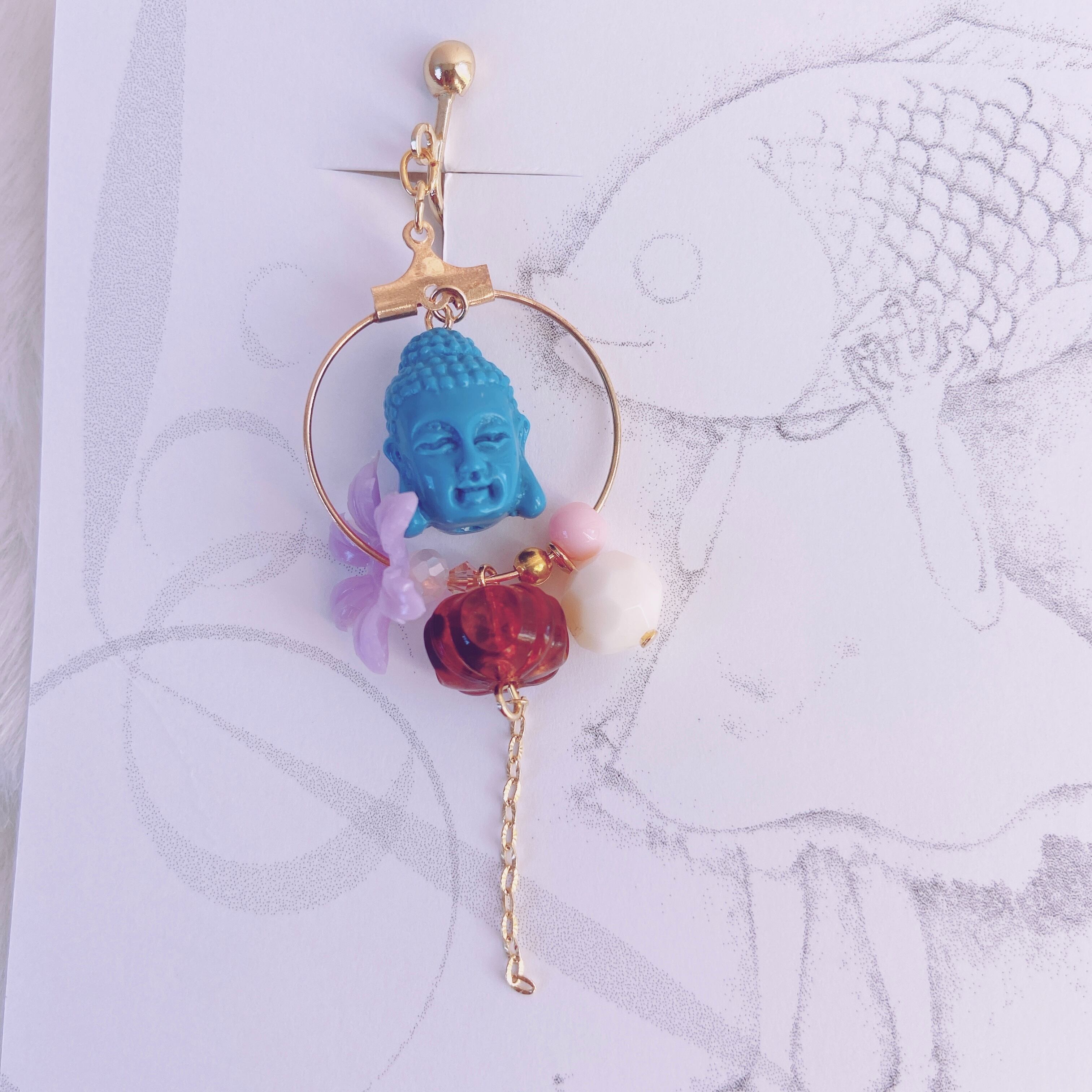 ブルーの仏さまがメインのフープイヤリングは色合いがとっても素敵です。