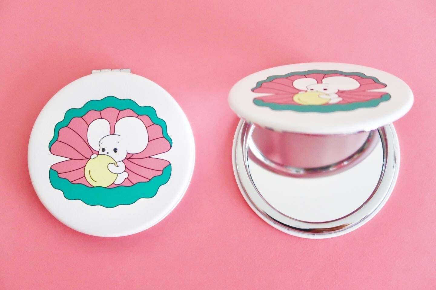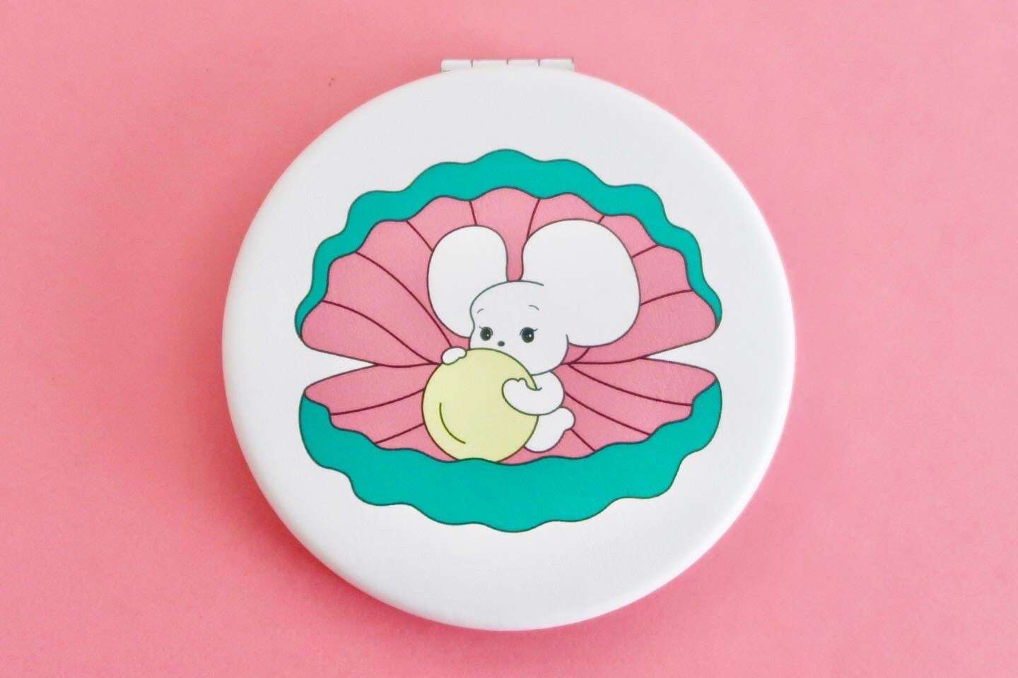 そんなイチムラさんの大人気キャラクター、何気ないねずみ/シラタマ ちゃんの貝がらシラタマシリーズのコンパクトミラーです。