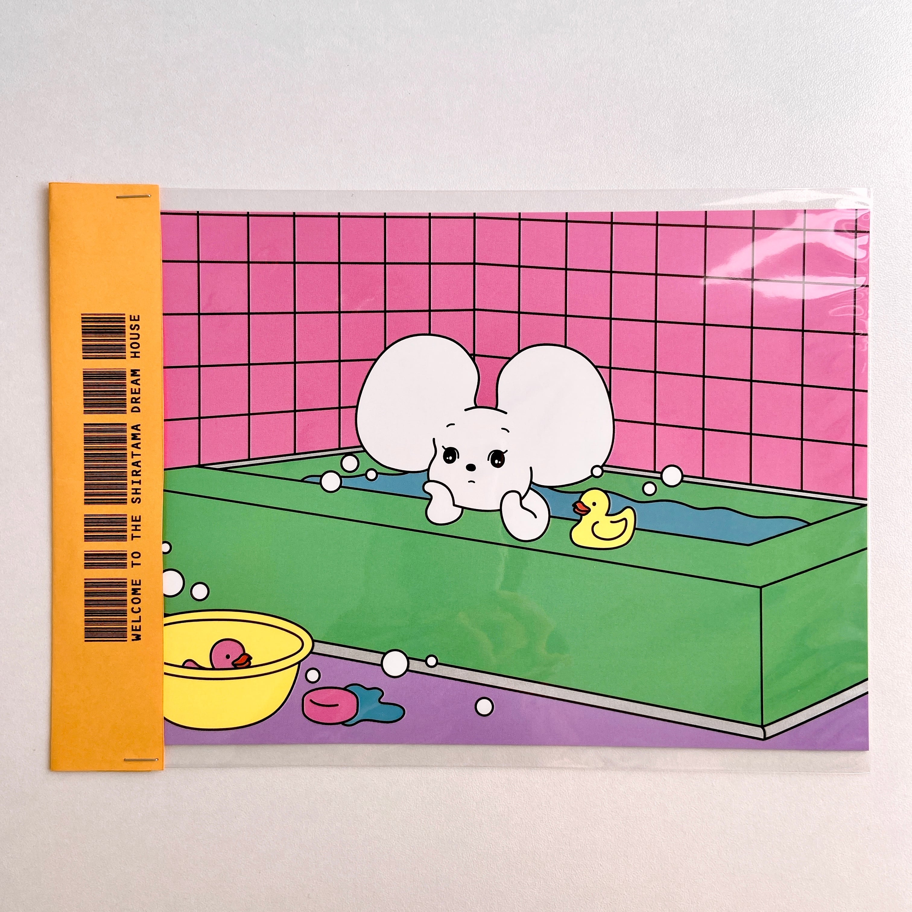 【YURI ICHIMURA】何気ないねずみ / シラタマ・うめだグッズ・ポスターカード お風呂に入るシラタマ