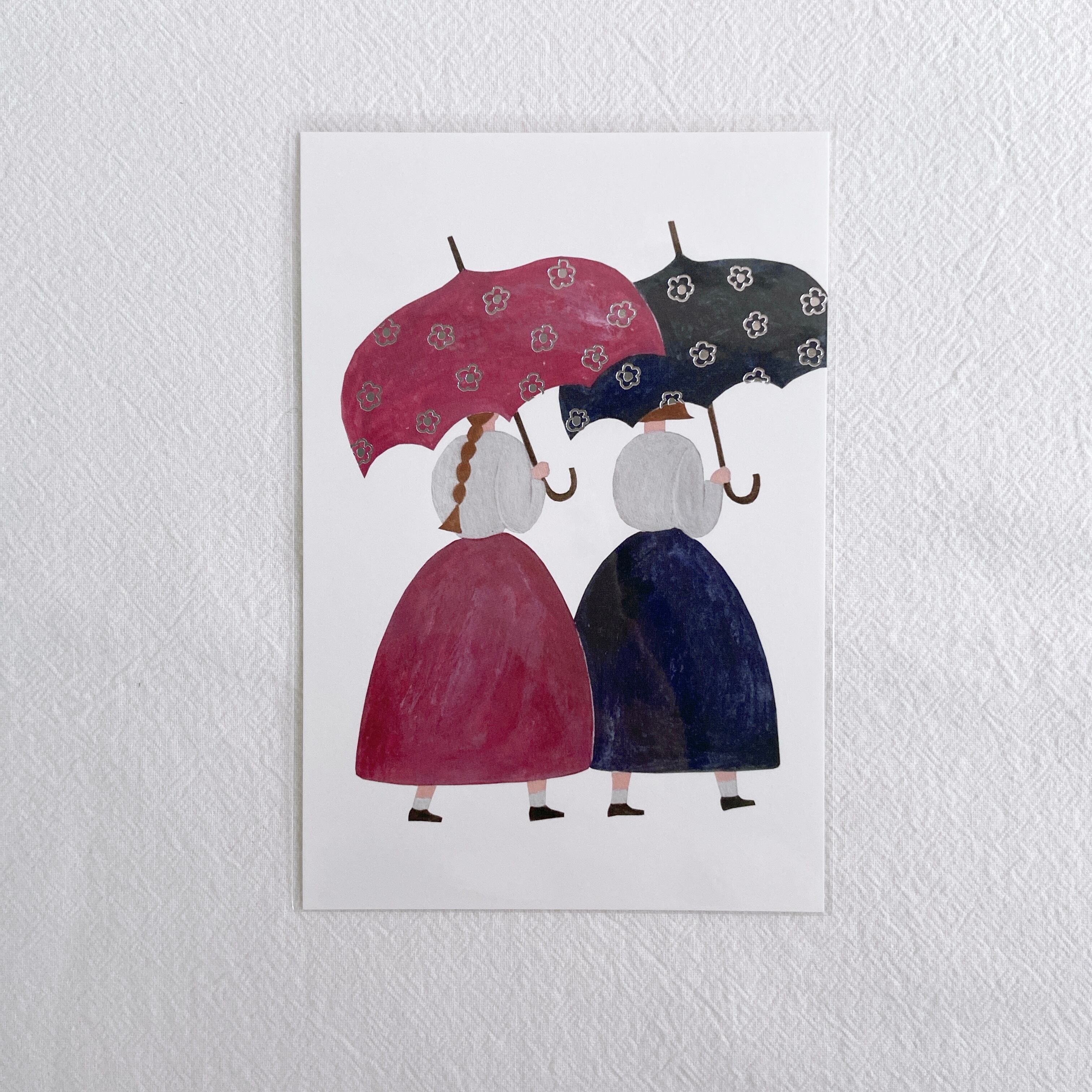 【ネクタイ】箔押しポストカード おはな柄の傘