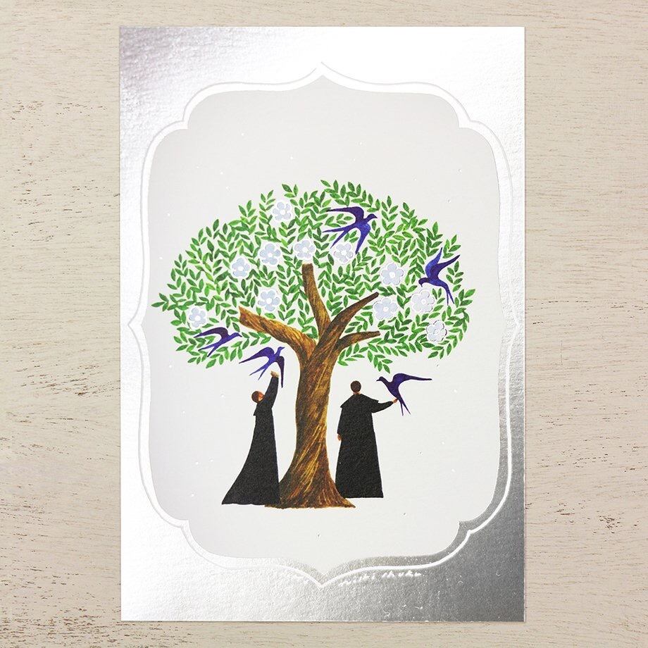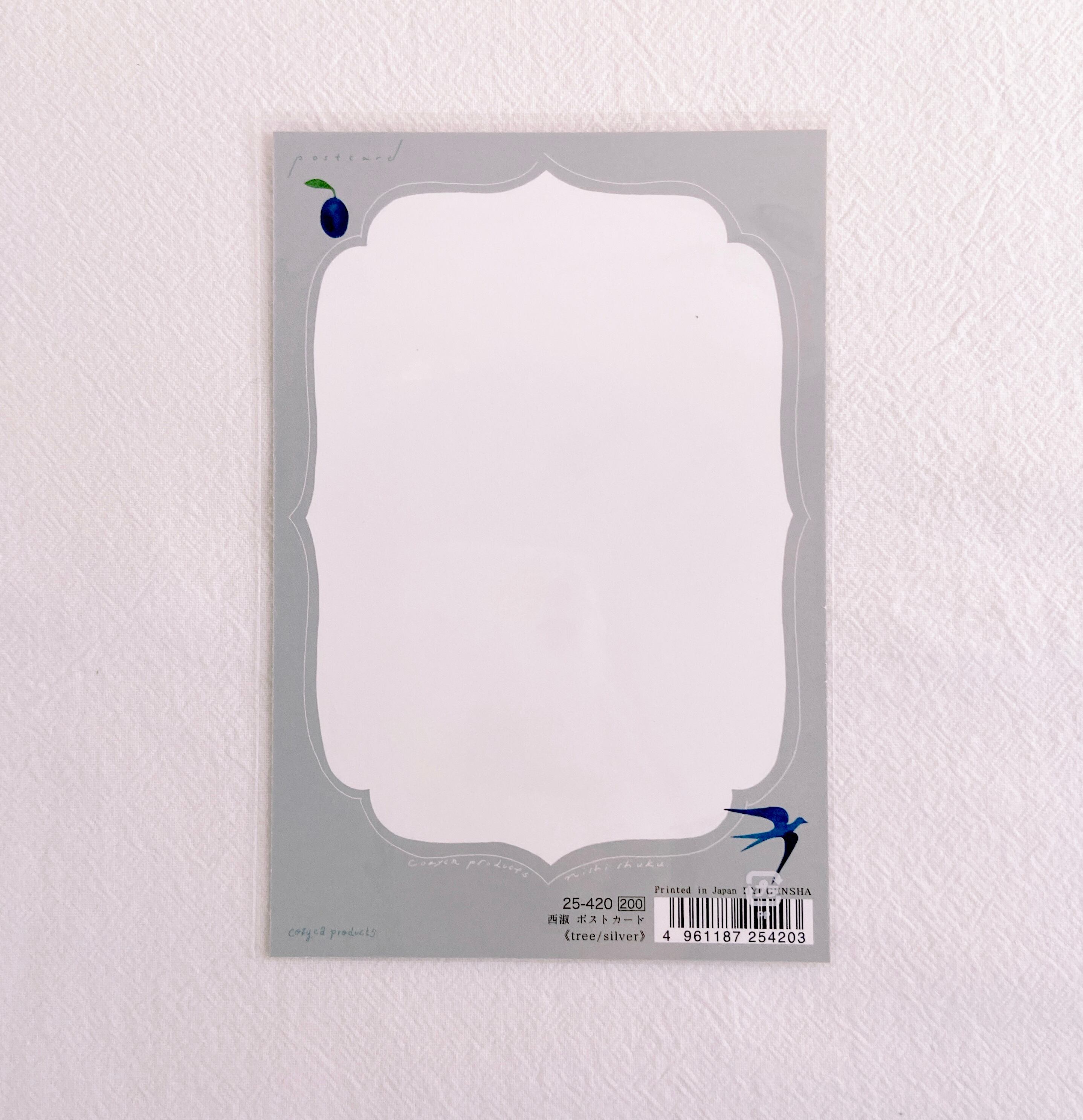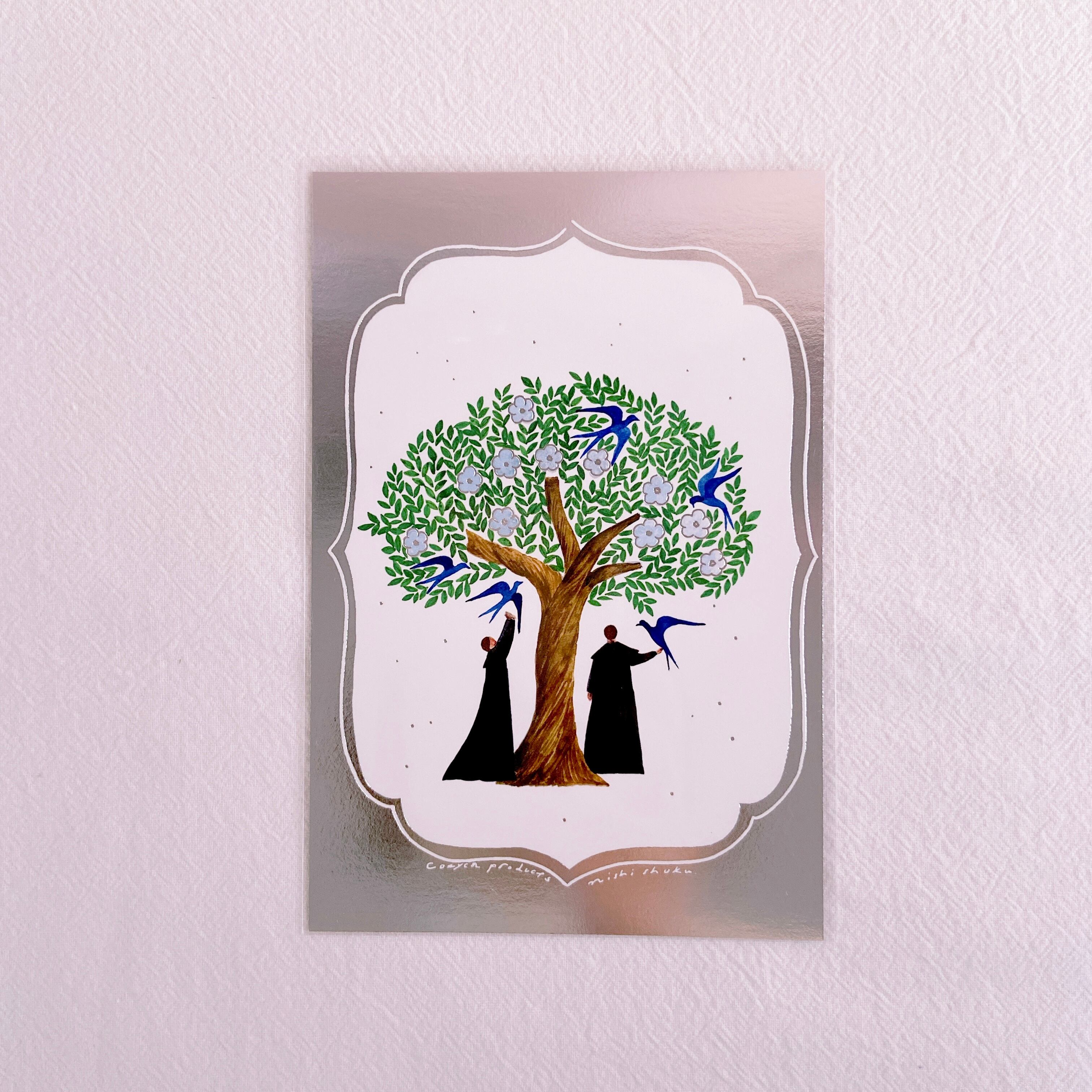 はがき全体に施された銀の箔押しが美しく輝く、西淑のポストカード。