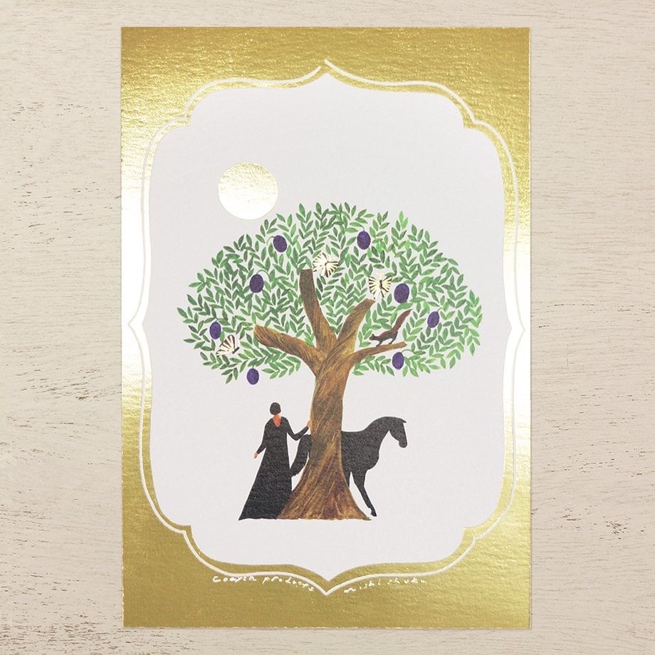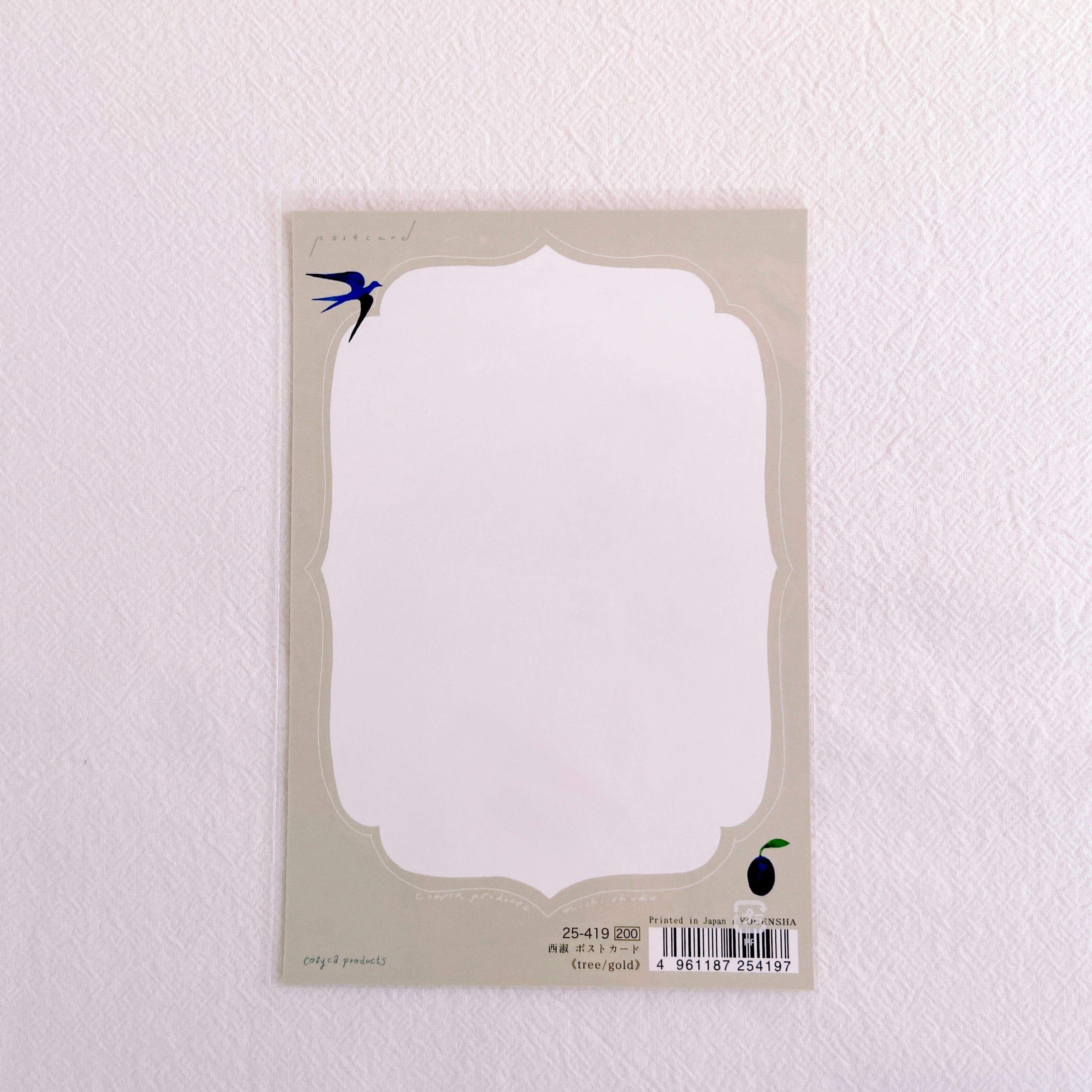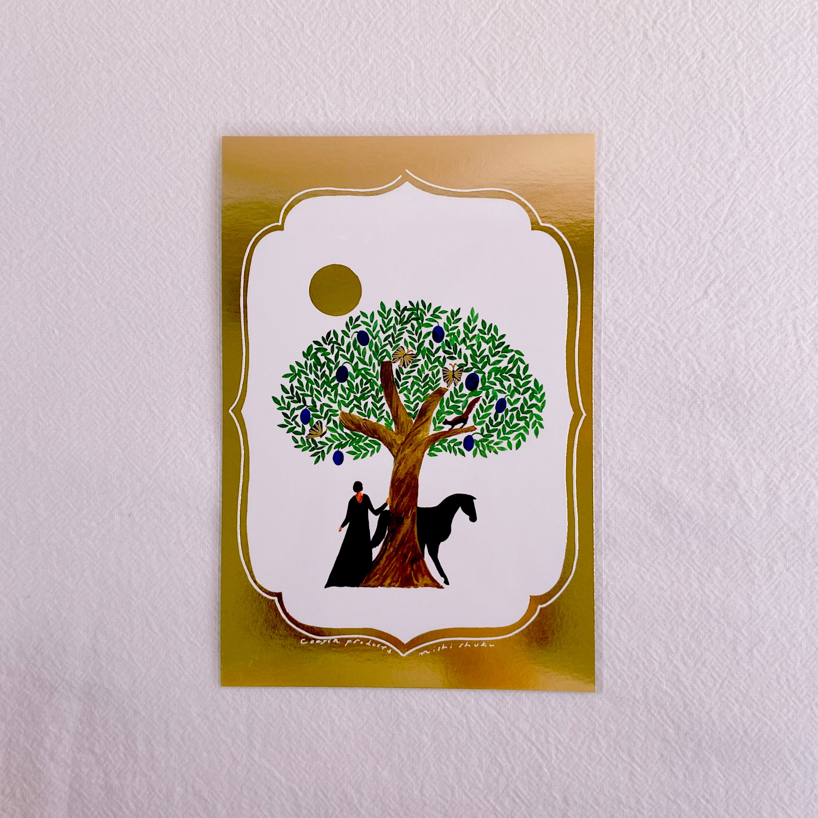 はがき全体に施された金の箔押しが美しく輝く、西淑のポストカード。