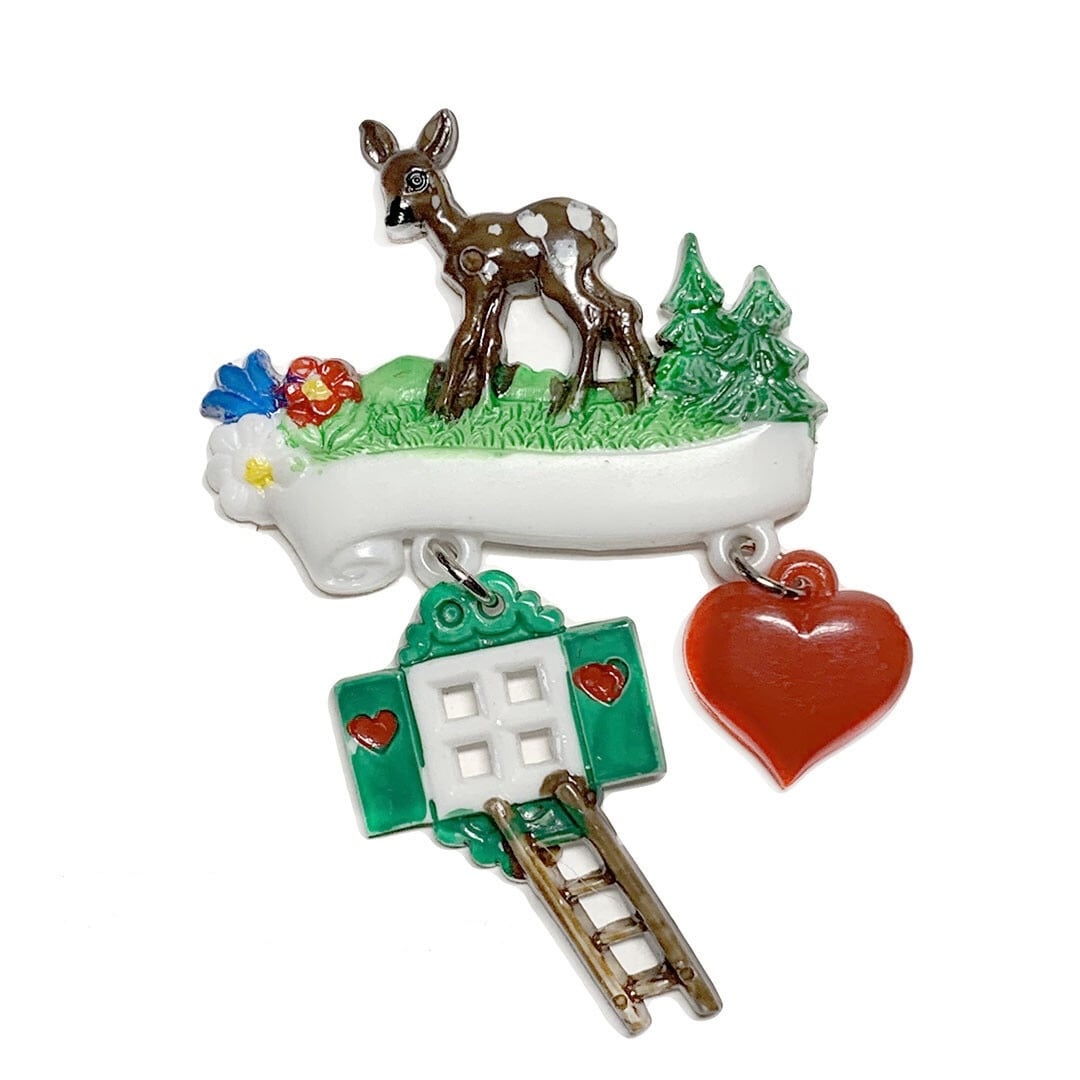 ドイツ製ブローチ 仔鹿&窓&ハート スウィング