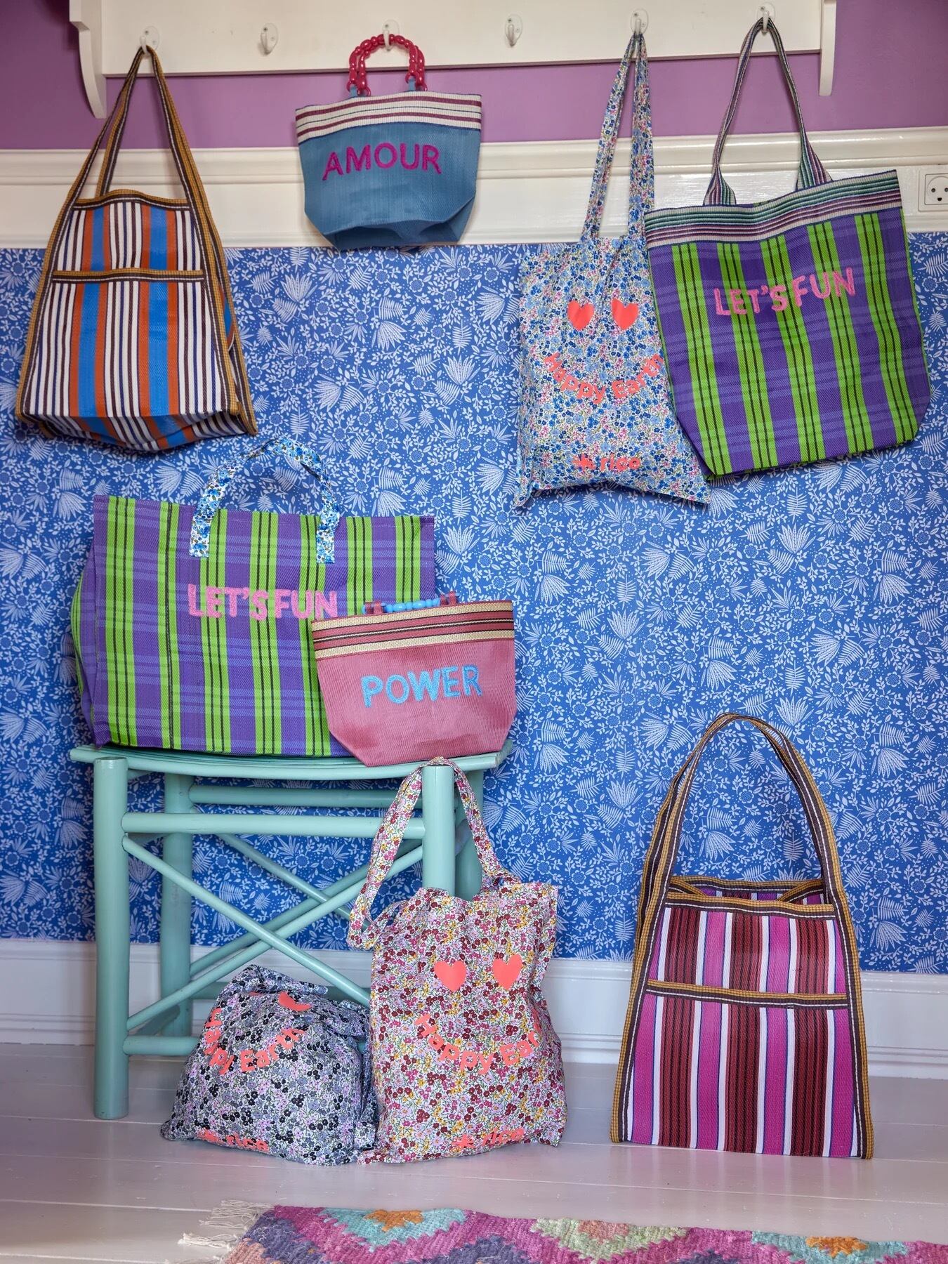 “POWER”や”AMOUR”など、ポジティブワードが書かれたデザインの、元気が出てきそうなエコなアイテムです。