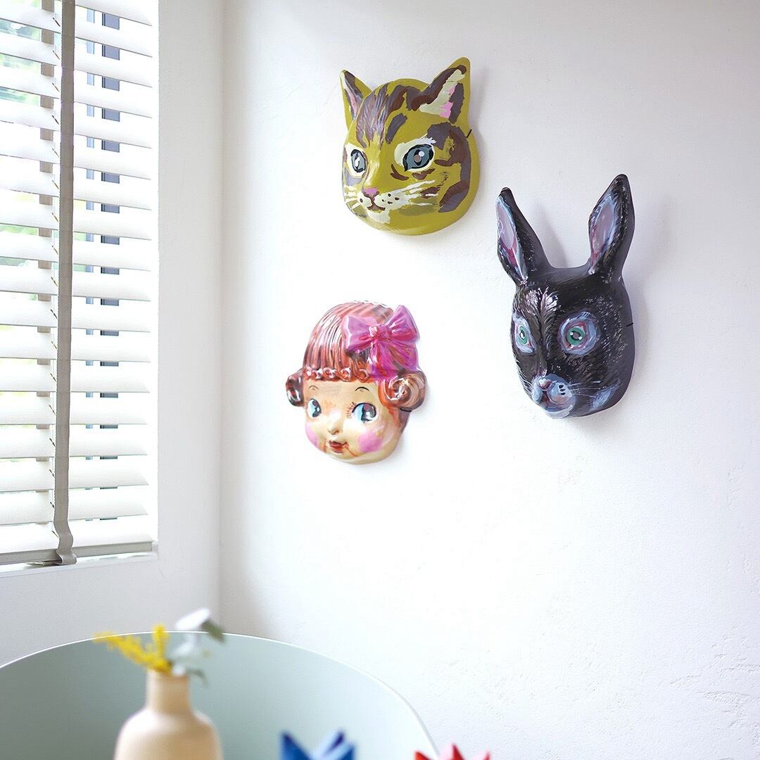 ナタリーレテさんの描く女の子や動物たちがキュートでカラフルなお面になりました。